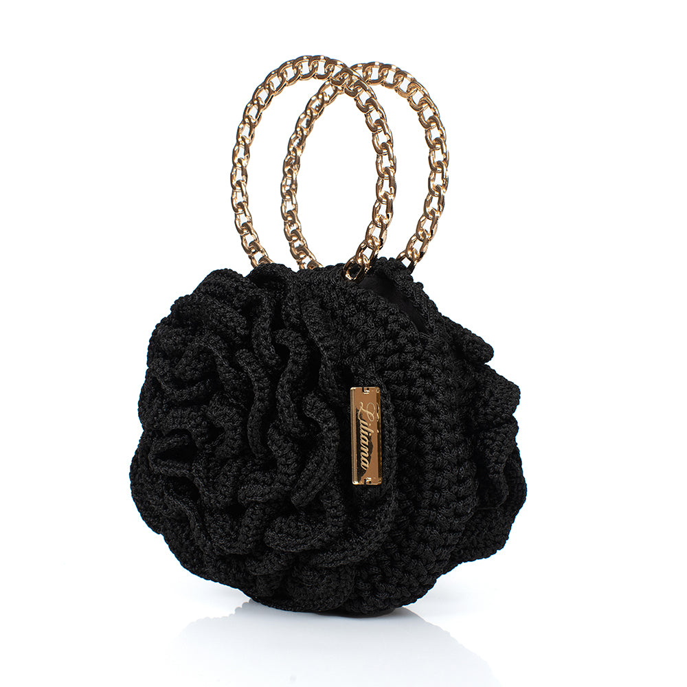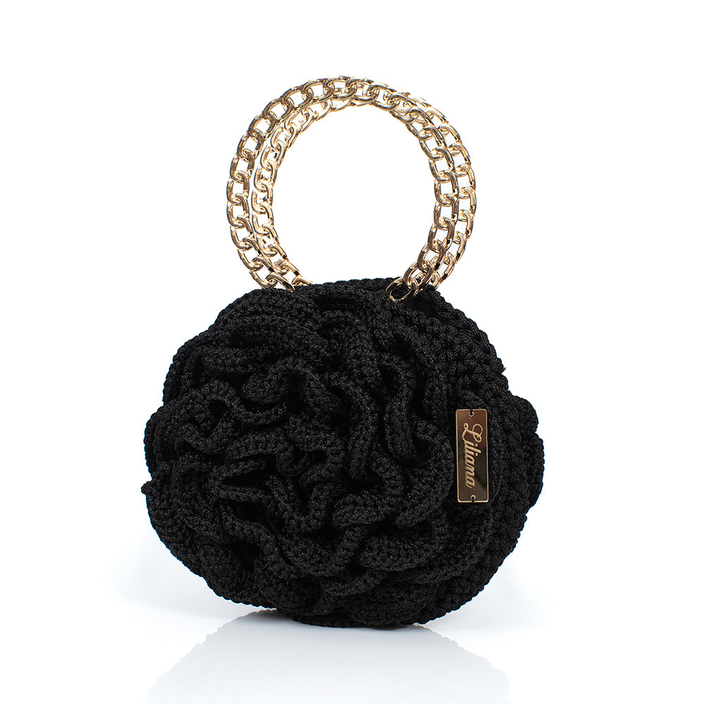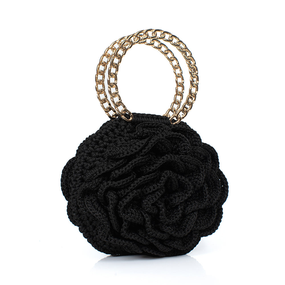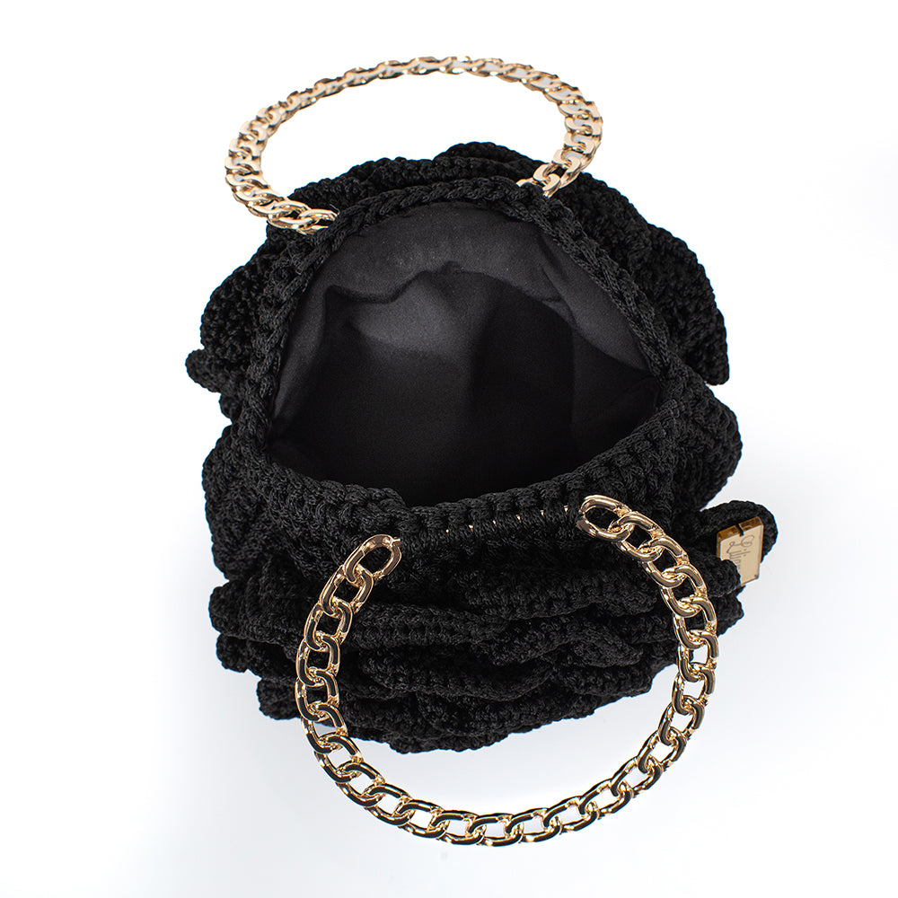 Χειροποίητη Πλεκτή Τσαντά Μαύρο Τριαντάφυλλο